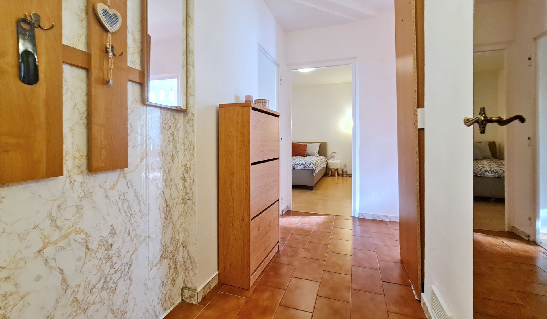 Byt pozostáva: z chodby s murovaným šatníkom, kuchyne, obývacej izby s presklenou lodžiou, spálne rozdelenej na dve časti - denná a nočná, kúpeľne s vaňou a samostatne WC.