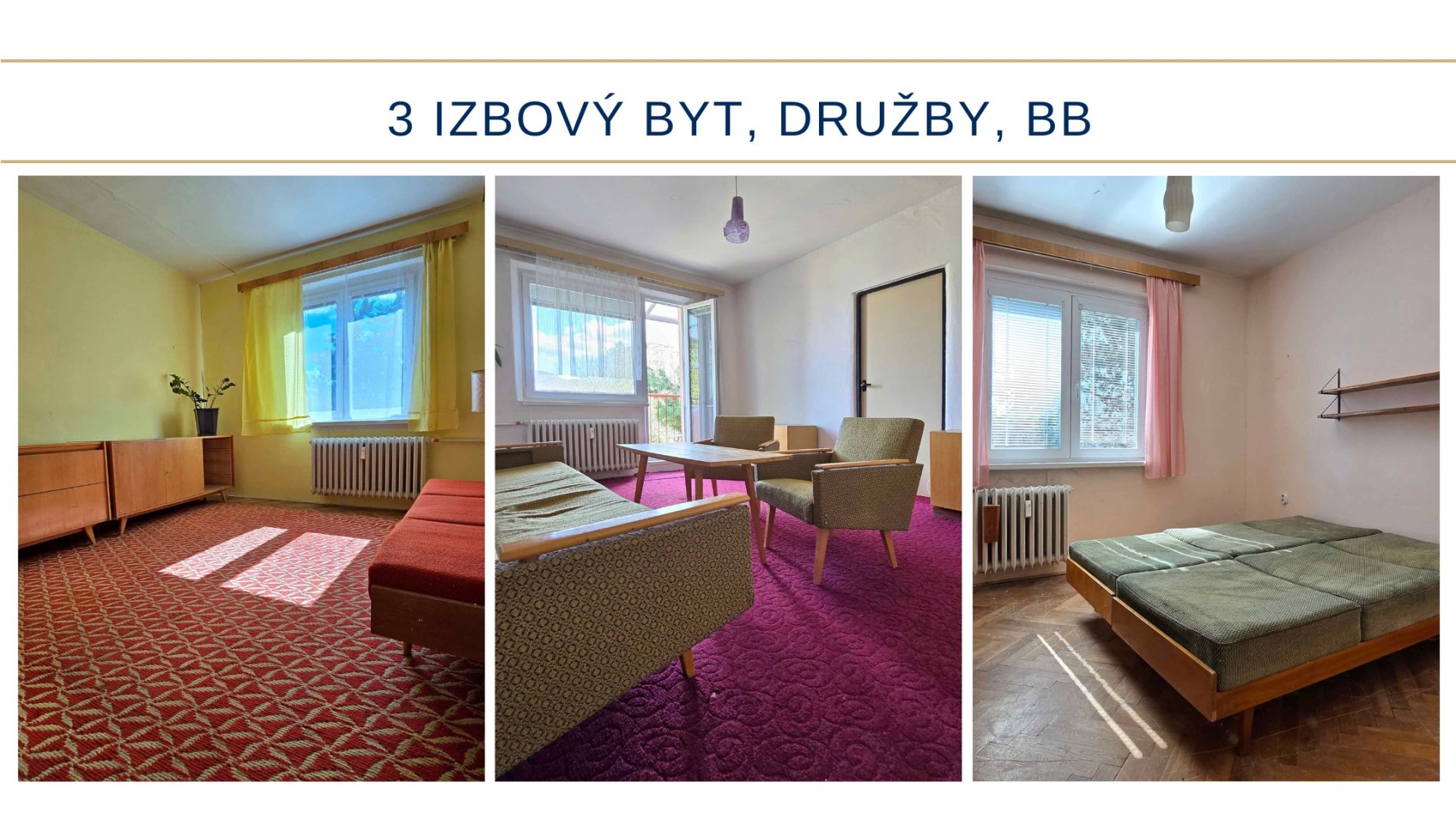 Ponúkam Vám na predaj slnečný 3-izbový byt v pôvodnom stave, nachádzajúci sa v obľúbenej a zelenej časti Banskej Bystrice - Fončorda na ulici Družby, len kúsok od Kyjevského námestia.